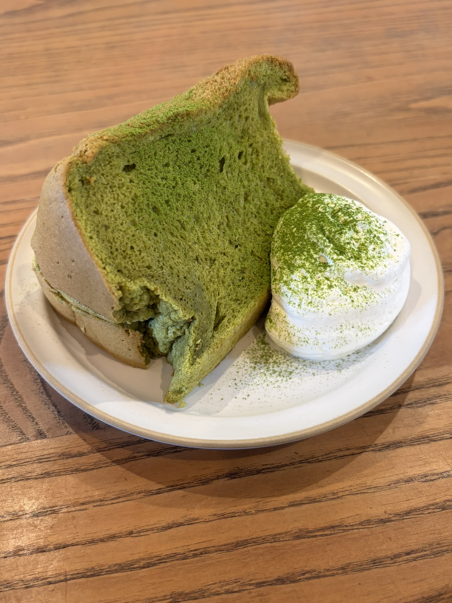 4月最後のカフェ風はあるが日差しが暑く感じるいつの間にかゼラニウムが咲いているハーブ系なので花は小さいつるバラも次々と咲く デザート「抹茶シフォンケーキ」300円抹茶色のきれいなケーキふわふわしっとりとして食べやすいあっ… 続きを読む デザート