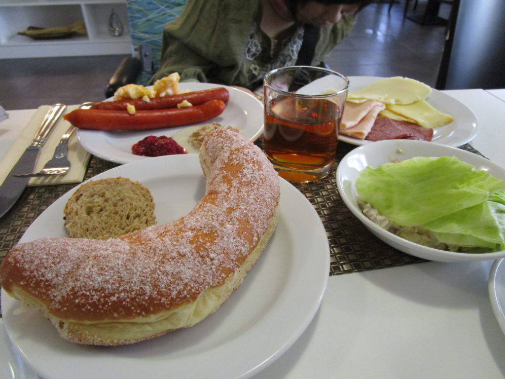 ホテル内で朝食。バイキング形式。揚げパンがあった。昔懐かしかった。