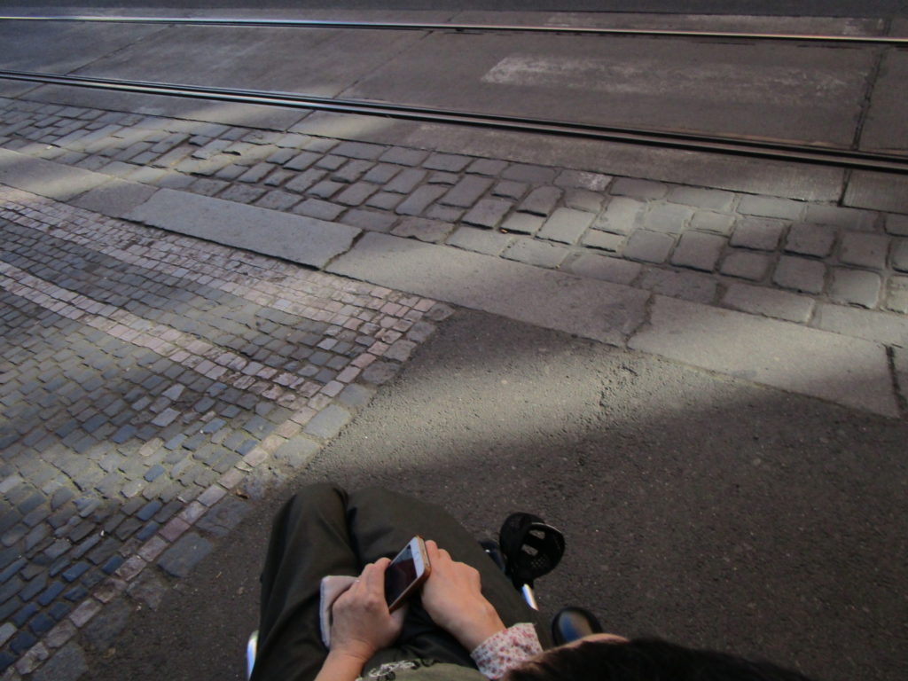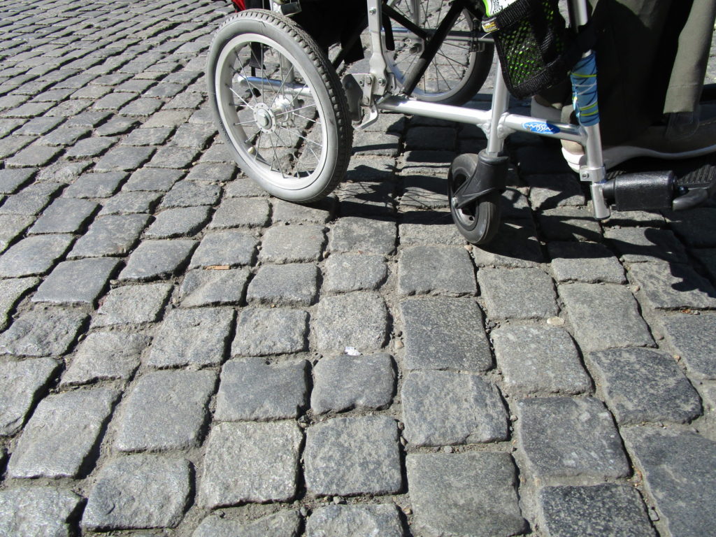 やはり石畳は車いすで、かなり動きずらい。