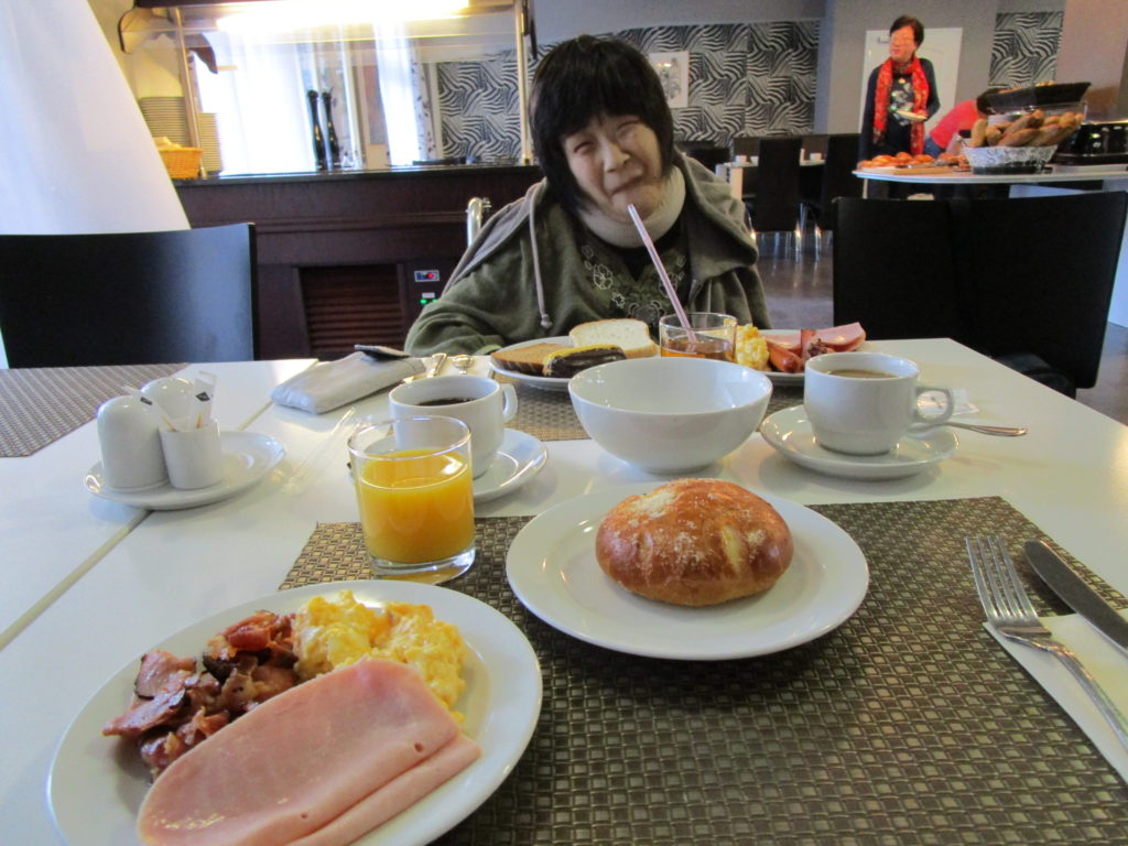 ホテルで朝食。