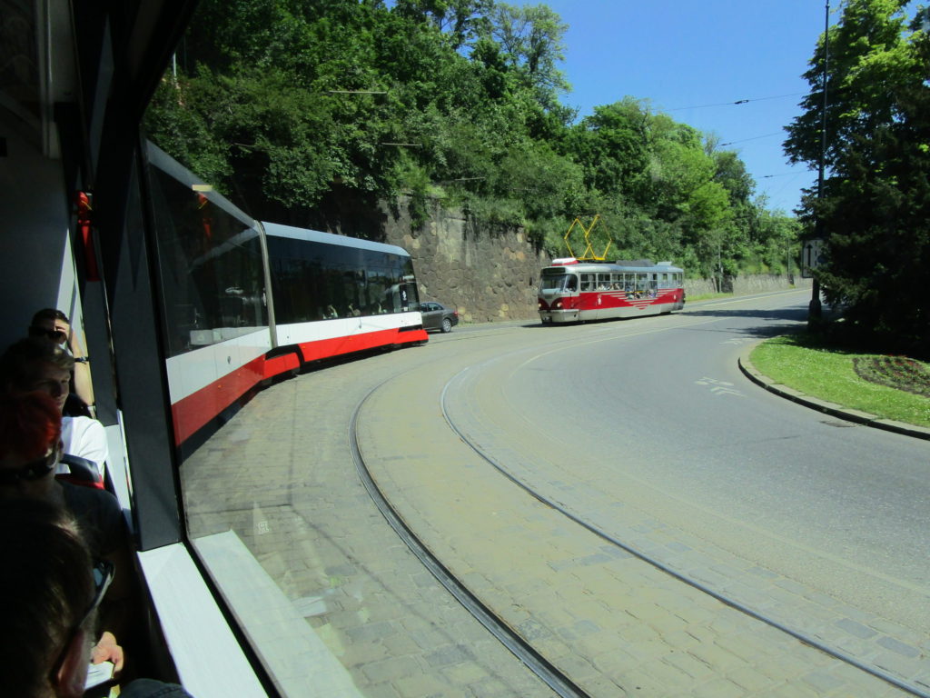 プラハ城から少し下りたところから、トラムに乗る。