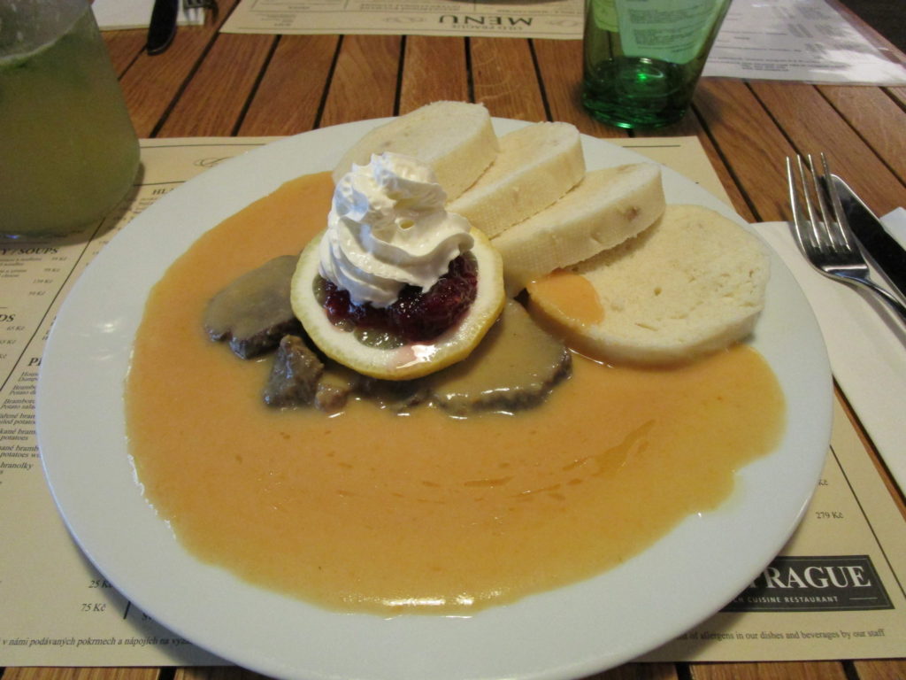 こちらは「スヴィチュコヴァー」という牛肉料理。白いものはパン。