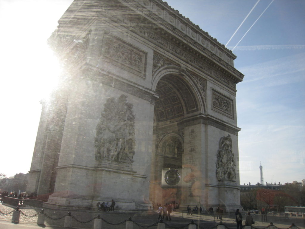 観光バスの中から見るパリ凱旋門。