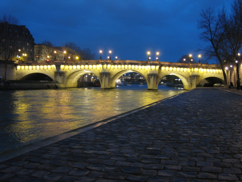 夜のセーヌ川。橋がライトアップされて、とても良い雰囲気。
