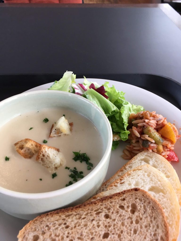 スープランチをいただく。パンが美味しかった。