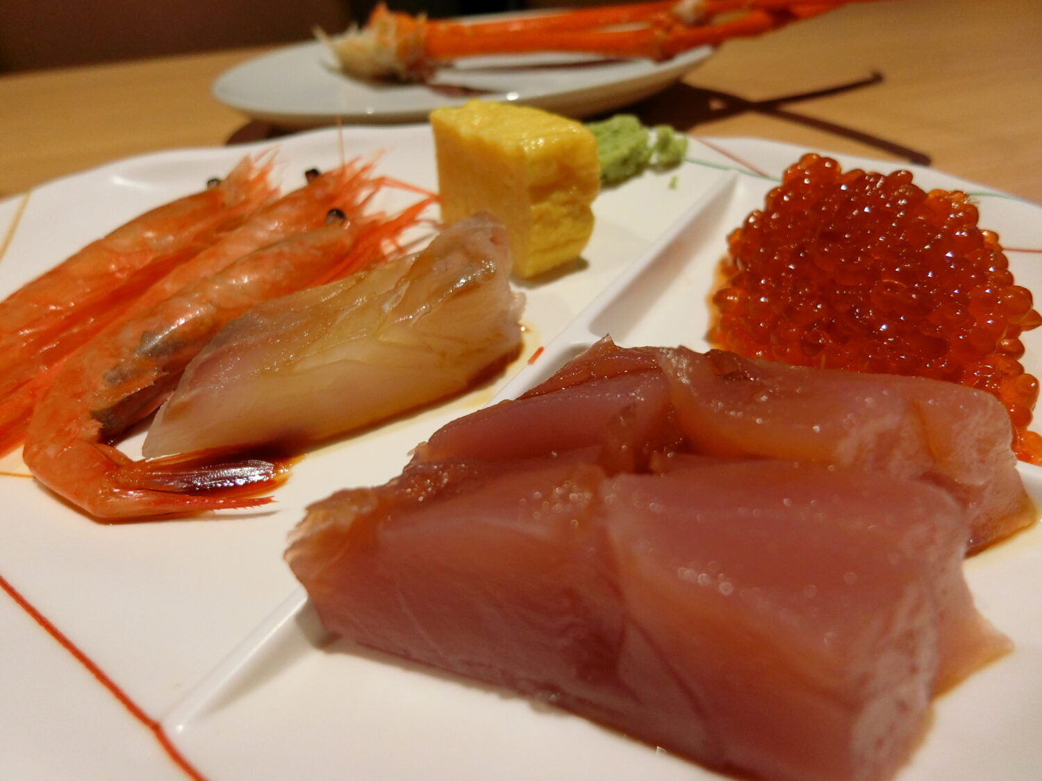 早速、好物のカニ、エビ、マグロなど海鮮から!